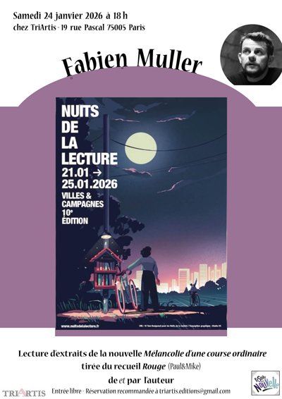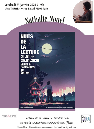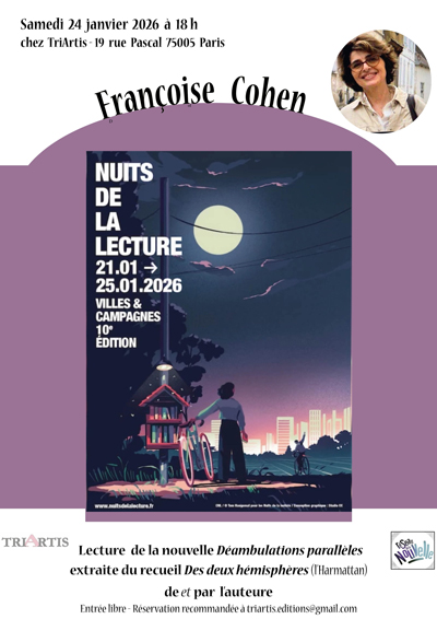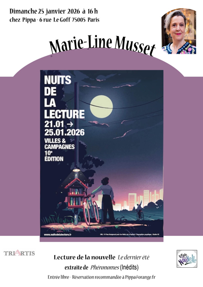 Dans le cadre des Nuits de la lecture, le Réseau de la nouvelle vous invite à lire une nouvelle de votre cru (de préférence sur le thème de la ville ou la campagne), le samedi 24 janvier ou le dimanche 25 janvier.